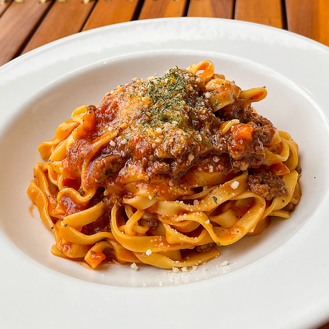 挽肉と香味野菜を赤ワインでじっくりと煮込んだミートソース。リピート率No.1メニューです!