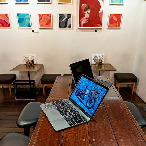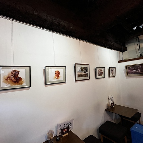 絵画やイラスト、写真、雑貨などの展示・販売スペースを設けております。個展・グループ展など、随時受付中!