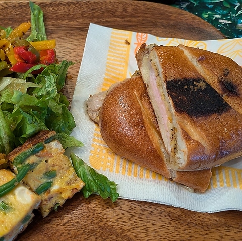 キューバサンドは、ローストポーク・チーズ・自家製ソースを挟み、バターで香ばしく焼き上げてプレスしたホットサンドです。店主が現地で学んだ作り方を再現しており、ローストポークはオレンジやライムを使った特製ソースに数日漬け込み、低温調理でジューシーに仕上げています。外はカリッと、中は旨みが広がる当店自慢の一品です。
