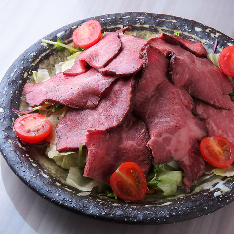 じっくり提案調理したローストビーフを新鮮な朝獲れサラダに贅沢に乗せました◎