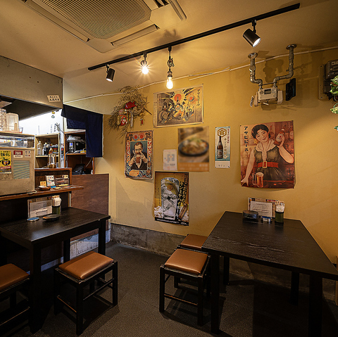 店内はレトロな装飾で楽しくお食事できる空間となっております!お一人様からご利用歓迎のカウンター席は、友人やデートでのサシ飲みをするのにも◎テーブル席は卓を繋げることもできますので、グループでのお食事に最適です♪