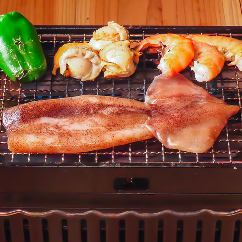格別です。新鮮な海鮮類や旬の野菜も一緒に、贅沢な時間をお過ごしください。気の合う仲間と七輪を囲みながら海外ビール。至福のひと時です。