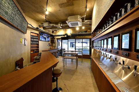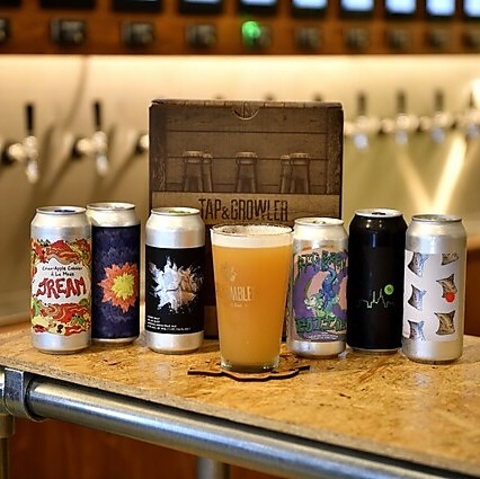 クラフトビール専門店の当店。ブルワリーから仕入れた国産樽生ビールを常時15種類ほどご用意。缶の商品は全て海外産で見た目もお洒落◎新しい味わいを毎日仕入れており、来店の度に異なるビールを楽しめます!ビールタップが客席に開放されており、飲みたいビールを好きな量だけ注ぎ、1オンス単位でお好きなものを少しずつお楽しみいただけます