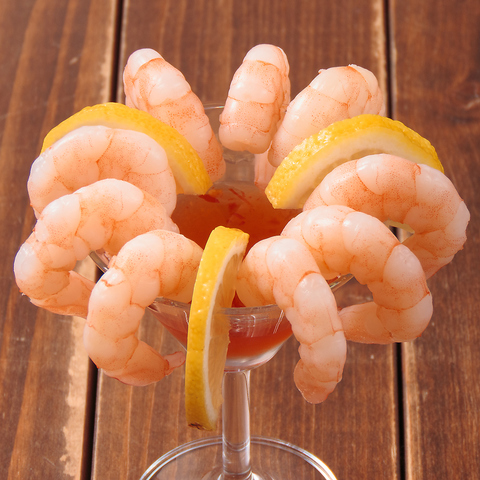 ボイルした海老を冷やし、ピリッとした酸味の効いた特性カクテルソースとともに。前菜やお酒のお供にピッタリな前菜です。