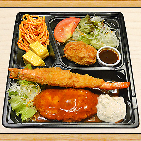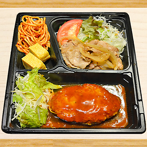 からあげグランプリ最高金賞を受賞した伝説の若鶏唐揚と手ごねハンバーグのスペシャルコラボ!ご飯大盛り+100円(税込108円)。白米を雑穀米変更無料(※雑穀米を希望された場合でも売りきれの際は、白米に切り替えてのご提供となります)