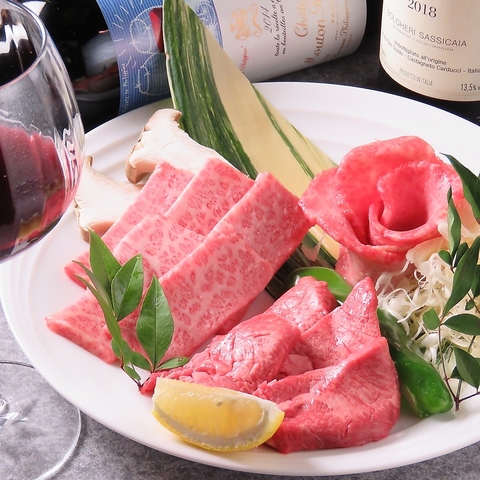 当店自慢の極上黒毛和牛から、お好みに合わせてチョイスいただけます。厚切りタン・上カルビ・上ロース・ヒウチ・イチボ・サーロイン・ランプの中から3種お選び下さい。