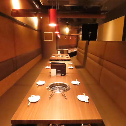 2名様から12名様までの個室をご用意しております。美味しいお肉を落ち着いて楽しめるくつろぎ空間です。(12名様個室は、6名様テーブルが2つ、背中合わせとなります)