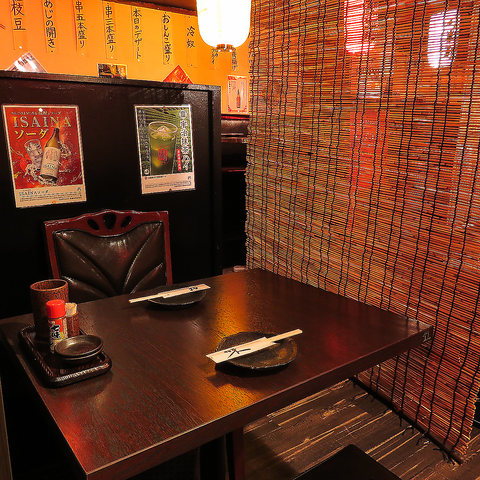 2名でゆったりとしたテーブルでご利用頂けます。お隣にはコロナ対策の仕切りも御座いますので安心してご利用ください。新宿/個室/居酒屋/焼き鳥/海鮮/海鮮/飲み放題/もつ鍋/完全個室/焼鳥/新宿駅/新宿東口
