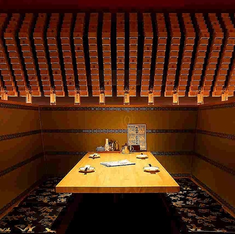 雰囲気ある空間で京都の地酒を始め"急須で入れる抹茶割り"など、豊富な和食と共にお愉しみいただけます。京おばんざい、鮮魚の造り、串揚げ、あて巻き、握り寿司をカジュアルにお楽しみいただけます。
