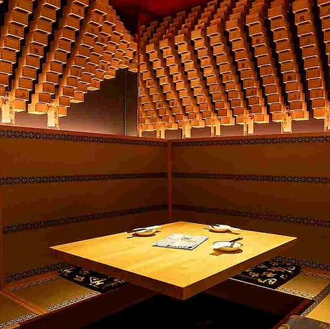 【テーブル席】2名様~20名様まで自由自在なテーブル席は、会社のご宴会のシーンにご利用いただけます。ソファー部分が畳になっており、和の空間を感じていただけるお席となっております。