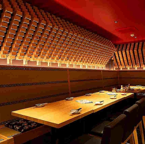 【半個室ボックス席】3名様~6名様の半個室風のボックス席はプライベート利用に。落ち着いてお食事を楽しまれたい方や接待などの特別なゲストへのおもてなしにぴったりのお席です。