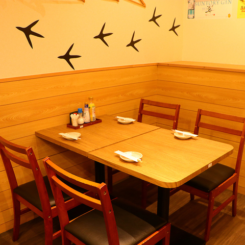 オープンフロアもご用意しております♪テーブル席を繋げて大人数での宴会も可能です♪テーブル席は2名~最大24名様までご利用可能◎新大阪での宴会は鶏っくにおまかせ下さい!!仕事帰りにみんなで楽しく宴会ができる空間となっております!