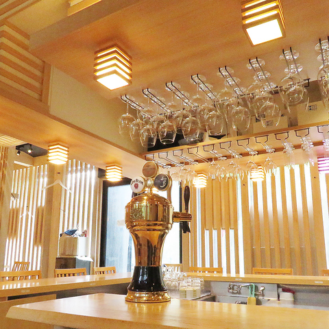 ライブ感溢れるカウンターメインのお席に、大人数でもゆったりできるテーブル席がございます。