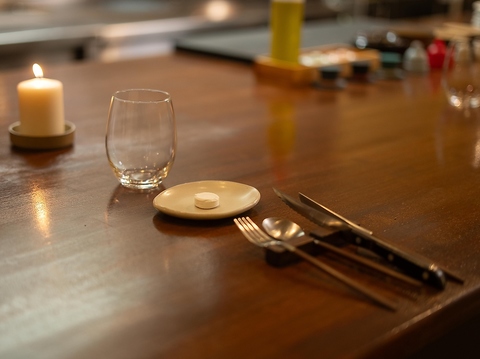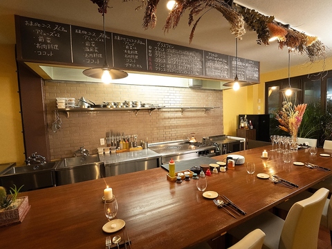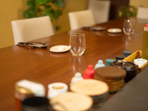 緑が落ち着く雰囲気の中、カジュアルに気軽に楽しんでいただける空間。店主との会話や演出を間近で受けることができます。