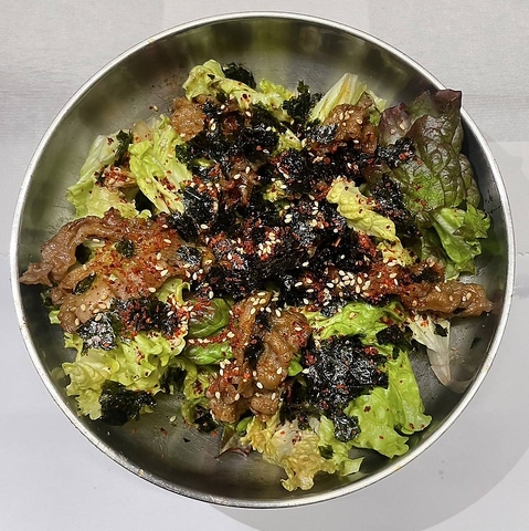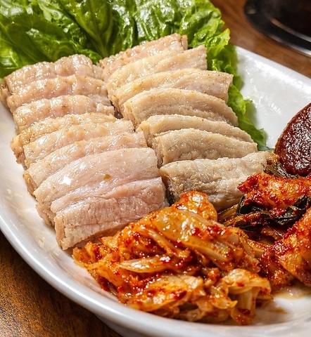 ミレジャンの代名詞でもある厚さ2cmの新鮮な豚肉をドラム缶テーブルで丁寧に焼き上げる自慢の逸品。注文率80%を超える人気商品!ご賞味あれ!!サムギョプサルセットはサンチュ・ナムルセット・ニンニクをご用意!こんがり焼き上げた豚肉からは絶品の旨味が溢れ出す!ヘルシー野菜とピッタリ!※2人前~