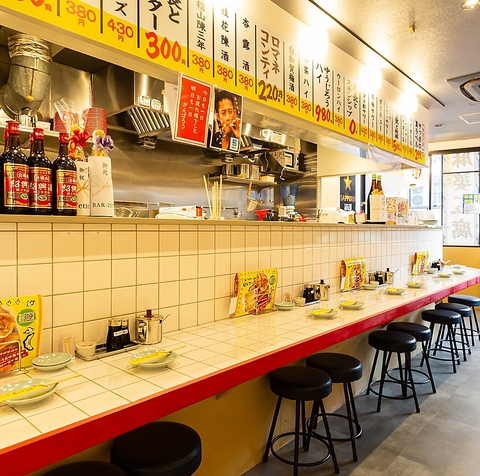 お一人様大歓迎! カウンター席では、フラッと気軽にお食事を楽しめます。仕事帰りにもぜひお立ち寄りください。またデートなどでのお二人でのご利用にも最適です。定番中華と相性抜群のお飲み物をたしみながらごゆっくりとお過ごしください♪