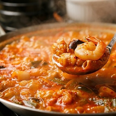 当店自慢のナッコプセ♪最近韓国で流行りのナッコプセ♪タコとホルモン、エビが入った旨辛のお鍋です!ぜひご賞味ください。