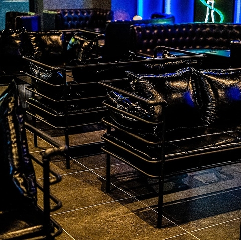 ブラックレザーのソファが並ぶスタイリッシュなラウンジは、都会の喧騒を忘れさせる静寂と洗練が共存する場所です。床から天井まで広がるガラス窓の向こうには、煌めく都市の光が広がり、青い間接照明が幻想的なムードを演出。壁に輝くネオンアートが、非日常のひとときをさらに彩ります。光と影が織りなす特別な夜をお楽しみください。