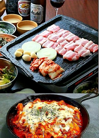 サムギョプサルとチーズタッカルビを楽しめる贅沢なプランです!キムチやナムル、サラダ、ライスはお代わり自由で存分に味わえます!120分の飲み放題付きは6930円(税込)です!友人や家族と一緒に楽しいひとときをお過ごしください♪