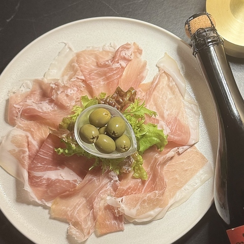 愛媛では珍しいイタリア製の手動生ハムスライサーを使って薄切りふわふわに切ってご提供する生ハムメニューがオススメ!生ハムはフランスから取り寄せたジャンボン・ド・バイヨンヌを使用しワインやシャンパンとの相性抜群!サリエに来たら頼む価値ありです。ー