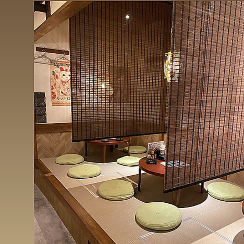 座敷の間には仕切りをご用意しておりますので半個室のようなプライベート感の中で宴会を愉しめます!大人数の宴会の場合は仕切りを取り払って対応させていただきますのでお気軽にご相談下さい♪