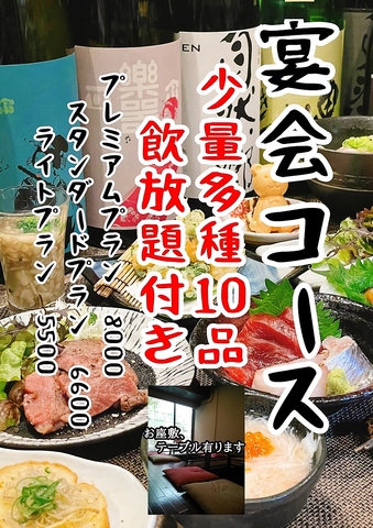 人気の「ちょこちょこいっぱい少量多種10品」に飲み放題がついたコースやお料理だけのコースもあります。コースだけのお料理も喜んでいただいてます