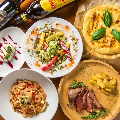 歓送迎会や会社宴会、結婚式二次会など各種宴会にぴったり◎各種映像・音響機器無料でご利用いただけます!本日のピッツァや国産牛もも肉のサイコロステーキなどが堪能できる全7品120分飲み放題付きのコースです!お腹も心も満たされる素敵なひと時をお過ごしください♪