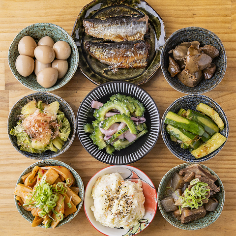 当店では手作りのおばんざいを多数ご用意◎定番のうずらやポテサラから、その日にご用意する旬の食材や変わり種まで常時10種以上を取り揃えております♪
