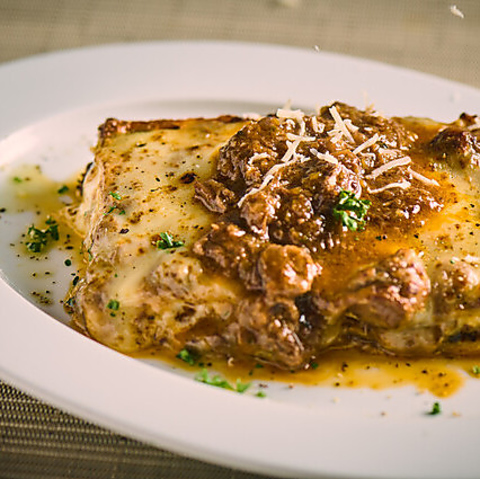 牛すじをじっくり煮込んで旨味を凝縮させた、当店自慢のラザニアです♪とろーりチーズとモチモチのパスタが絶妙に絡み合い、口の中でとろけます◎赤ワインと一緒にどうぞ!価格は1500円(税込)です。