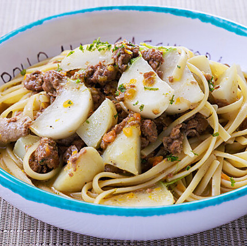 【濃厚な香り】鴨もも肉の白いボロネーゼ、タリアテッレ