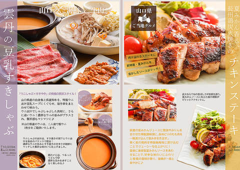 「雲丹の豆乳すきしゃぶ」獺祭と酒盗が香り立つ「長州海鮮瓦焼き」 など