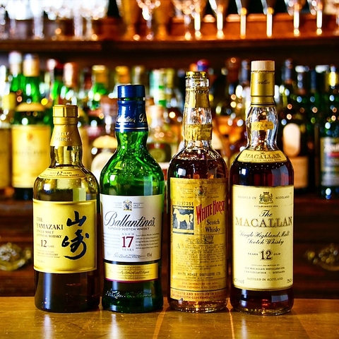 ワイン、ウィスキー、ビール、カクテル...各種お酒は種類、年代バラエティ豊かに取り揃えております。迷った際は是非、店主にお尋ねください。