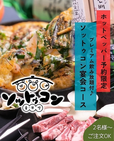 ★外観はチャミスルと韓国風の門構えが目印★ ~西鉄香椎駅から徒歩3分の好立地~香椎で韓国料理を堪能するなら「ソットゥコン」で決まり!!話題の韓国料理から、王道のサムギョプサルまで、本格韓国料理をご堪能くださいませ♪