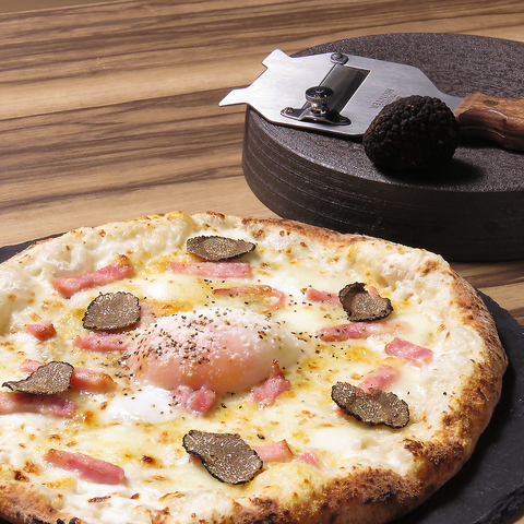 - ホワイトソース/モッツァレラ/ベーコン/卵/トリュフ -