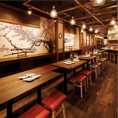 店内に入ると隠れ家のような寛ぎの空間が広がります。個室席は2名様から団体様まで幅広く対応!最大70名様までの個室もご用意可能です。お仕事帰りの飲み会、接待や二次会、各種ご宴会をお楽しみください。飲み放題付コースは多様な価格帯でご用意しております◎ただいま飲み会・宴会のご予約受付中!