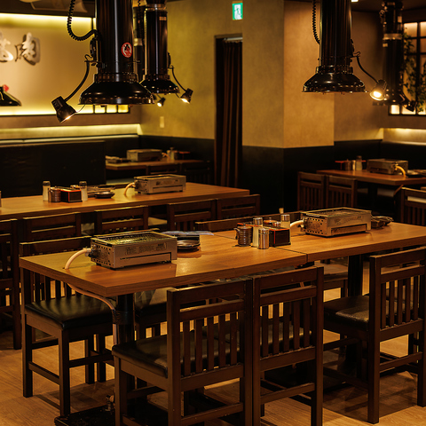 洗練された和モダンな空間で当店自慢国産和牛一頭買いの焼肉をお楽しみください。少人数のお客様から団体様まで様々なシーンでご利用いただける食べ放題コースを多数ご用意!デート・接待・急な飲み会・打ち上げ・企業団体様の宴会などのおすすめです!貸切のご予約も承っておりますので当店までお問い合わせください。