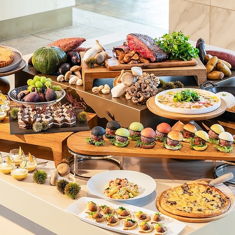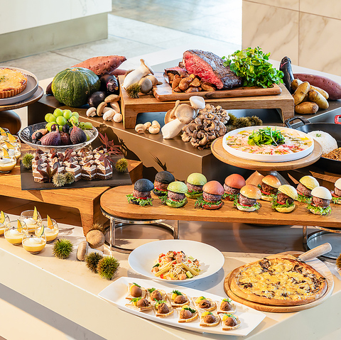 9月~11月は「秋の収穫祭」がテーマ。秋の味覚を存分に楽しめる期間限定のブッフェです!イタリア人シェフが手掛けるピザやパスタ、インド人シェフの奥深いスパイス香る本場インドカレーなど世界の味覚もお楽しみいただけるラインナップとなっております。