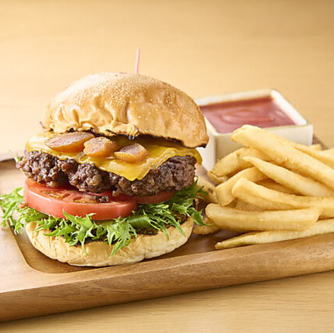 知多牛パティー、チェダーチーズ、守口漬、レタス、トマト、マヨネーズ