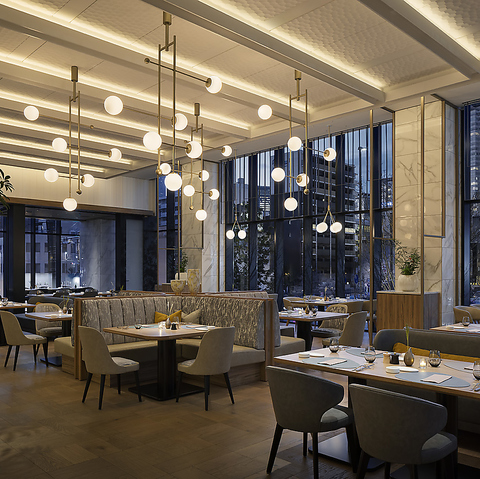 一面の大きな窓から自然光の差し込む開放的な空間で、ごゆっくりとお食事をお楽しみいただけます。お一人様でのリラックスタイムにはもちろん、気心の知れたご家族やご友人、お仕事仲間と会話を楽しみながら素敵なひとときをお過ごし下さい。