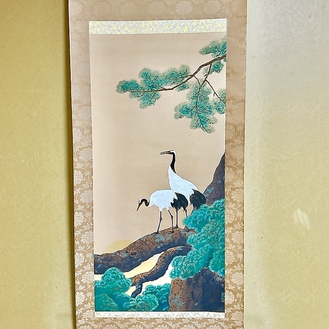 【慶びの日に寄り添う室礼】室内には川合玉堂の掛け軸を掲げ、季節の花々で彩る上質な空間をご用意しております。ご慶事には華やかに、故人を偲ぶ会には厳かに。食空間コーディネーターの資格を持つ女将が、ご用途に合わせ心を込めて室内を整えます。大切な接待や集いも、四季の情趣溢れる空間で、どうぞ心ゆくまでお愉しみください。