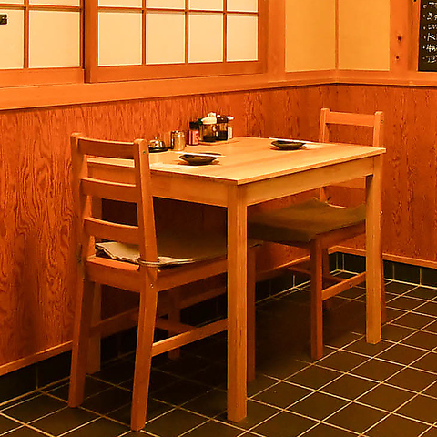 【テーブル席】2名掛け、4名掛けのテーブルをご用意しております。宴会の場合は半個室としてもご利用いただけるプライベートとなり、大変人気のお席です。(最大7名収容可能)