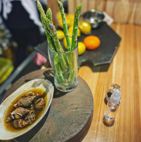 その日次第でメニューが変わる自家製漬けもん☆博多の白菜アミ海老漬けや高知のミョウガ味噌漬けなど、各地の旬の味覚を日替わりでご用意しております!美味しいお酒のお供にぜひ!