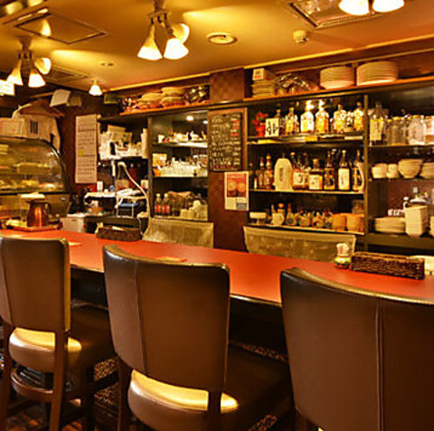 店内は赤と黒を基調としたシックな雰囲気で、まるで大人のバーのような空間が広がります。お一人様でも気軽に立ち寄れるカウンター席を5席ご用意。お仕事帰りのサク飲みや、本格的なタイ料理をアテにゆっくりと一杯楽しみたい時に最適です。洗練された空間で、癒やしのひとときをお過ごしください。