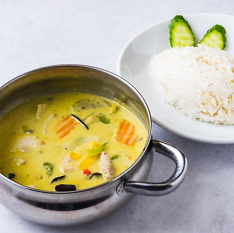 お昼休憩にぴったりのお得なランチセットをご用意しております!人気のカオマンガイセットやガパオライスセット、グリーンカレーセットなど、充実のラインナップからお選びいただけます。全てスープ+小鉢+デザート付きでボリュームも満点。本格タイ料理をお手軽にお楽しみください。