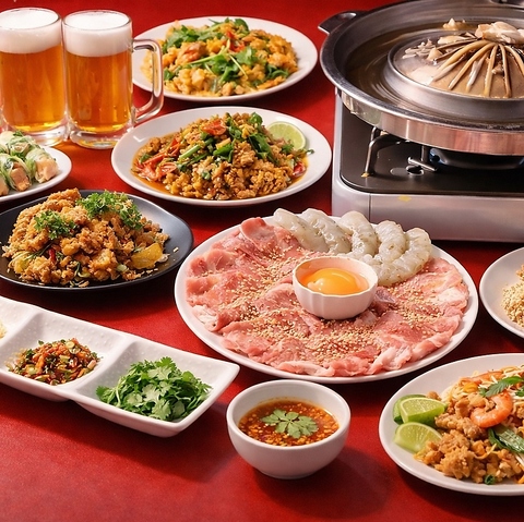本格的なタイ料理を心ゆくまで楽しめるコースを2,400円(税込)~ご用意しております。ムカター(タイのすき焼き)やタイしゃぶしゃぶ、チムチュム鍋といった各種鍋料理をメインとしたコースが充実。さらに、プラス2,500円(税込)で飲み放題付きに変更可能!宴会や女子会にぜひご利用ください。
