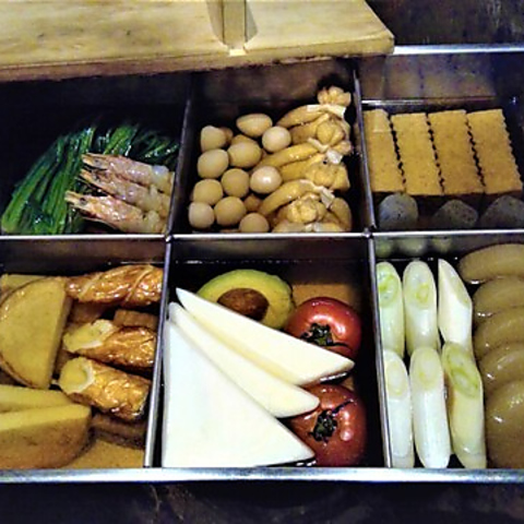 日本酒と相性抜群旨みの詰まったおでんは、日本酒のお供にぴったり。寒い季節はもちろん、通年で人気の一品です。仕事帰りの一杯や大人の飲み会におすすめです。