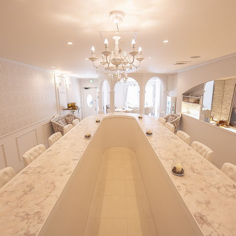 【大切な方々と素敵なひとときを】当店では、10名以上のグループで貸切が可能です。貸切については要相談となりますので、お気軽にお問い合わせください!大理石風のテーブルが美しい空間で、インスタ映えすること間違いなしです。特別なイベントやお祝い事にぴったりな場所で、お過ごしいただけます。