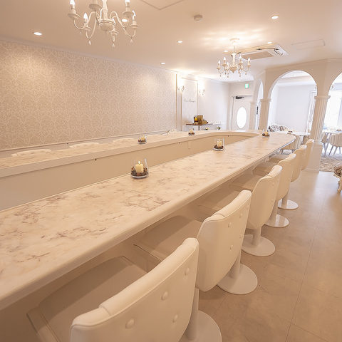 美しい内装が自慢の当店は、白を基調としたゴージャスな雰囲気で、特別な時間を演出します。友達との女子会や大切な人とのデートにぴったり。広々とした空間で、心地よいひとときをお楽しみいただけます。美味しいメニューと共に、素敵な思い出を作りませんか?リラックスできる環境で、楽しい会話が弾むこと間違いなし!