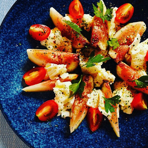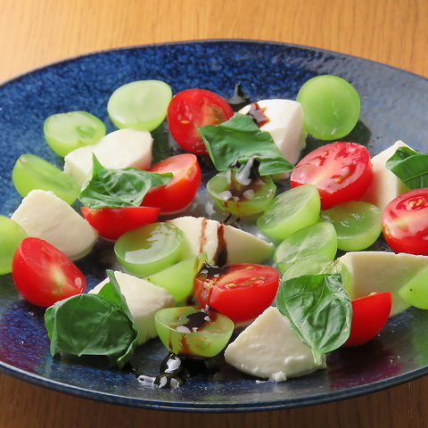 ジューシーなトマト、クリーミーなモッツァレラ、季節のフルーツを組み合わせたシンプルで美しいイタリアの前菜です。