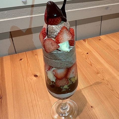 当店のホールケーキは、テイクアウト・店内飲食の両方とも対応可能です!(お持ち帰りの際は保冷バックを持参頂きますようお願いいたします。)数量限定の絶品パフェもご用意しています◎ミニサイズもございますので、気軽に楽しめるのが魅力です♪※2日前までにお電話でご予約お願いいたします。